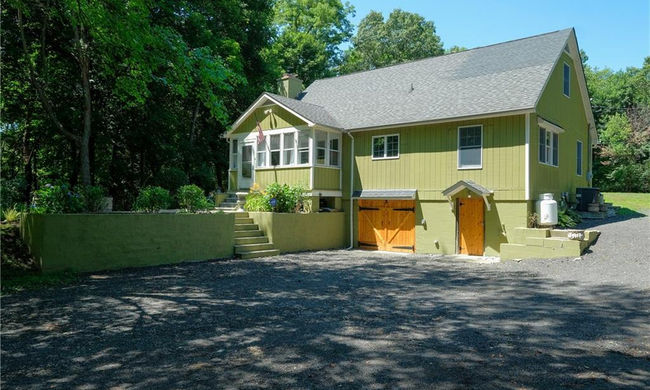 This charming country cape is nestled in privacy on a lovely, level parcel. Quality, comfort & convenience. It is the right house at the right price. Do not drive by; park your car & be delighted by what is inside. Enter enclosed windowed porch, large living room w/stone fireplace, dining area-country kitchen w/new ss appliances, soapstone counters, laundry room, full hall bath, two good size bedrooms.